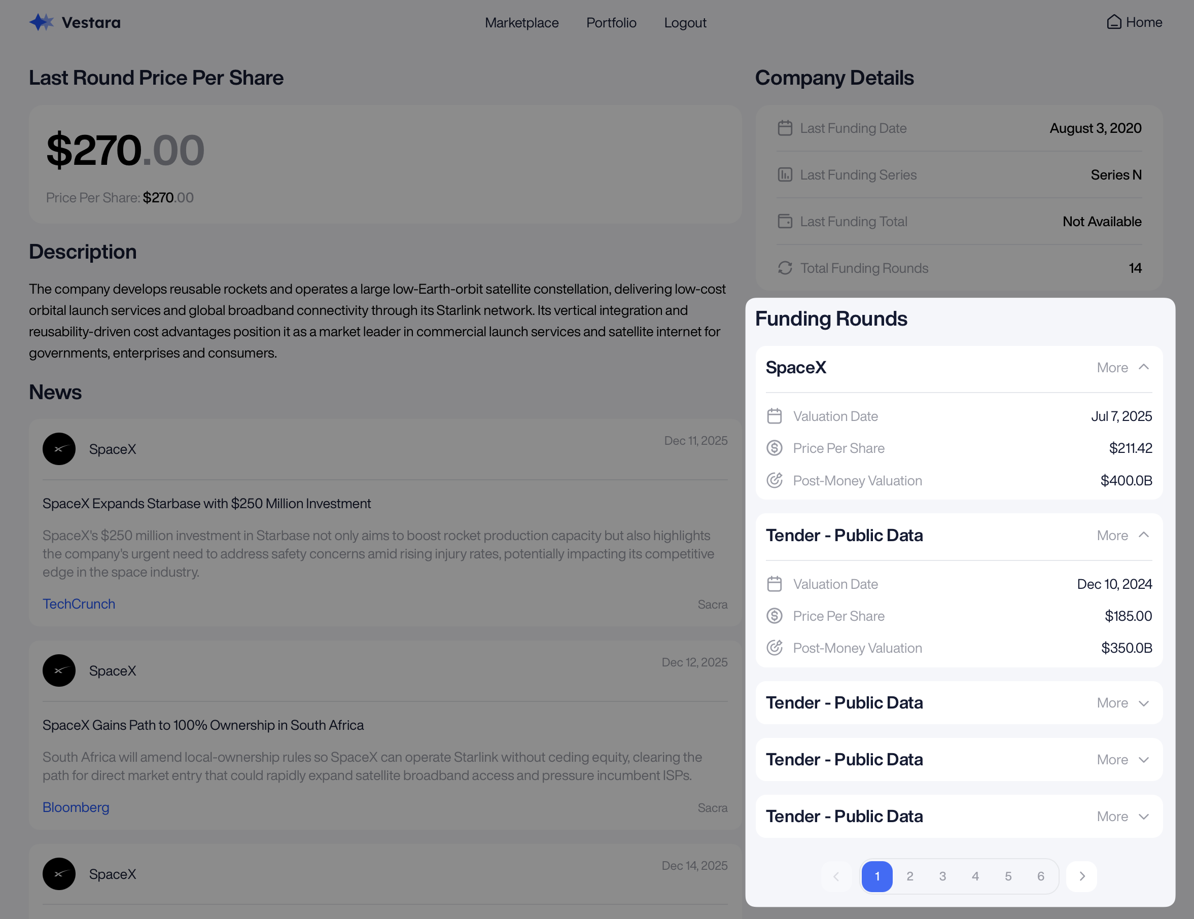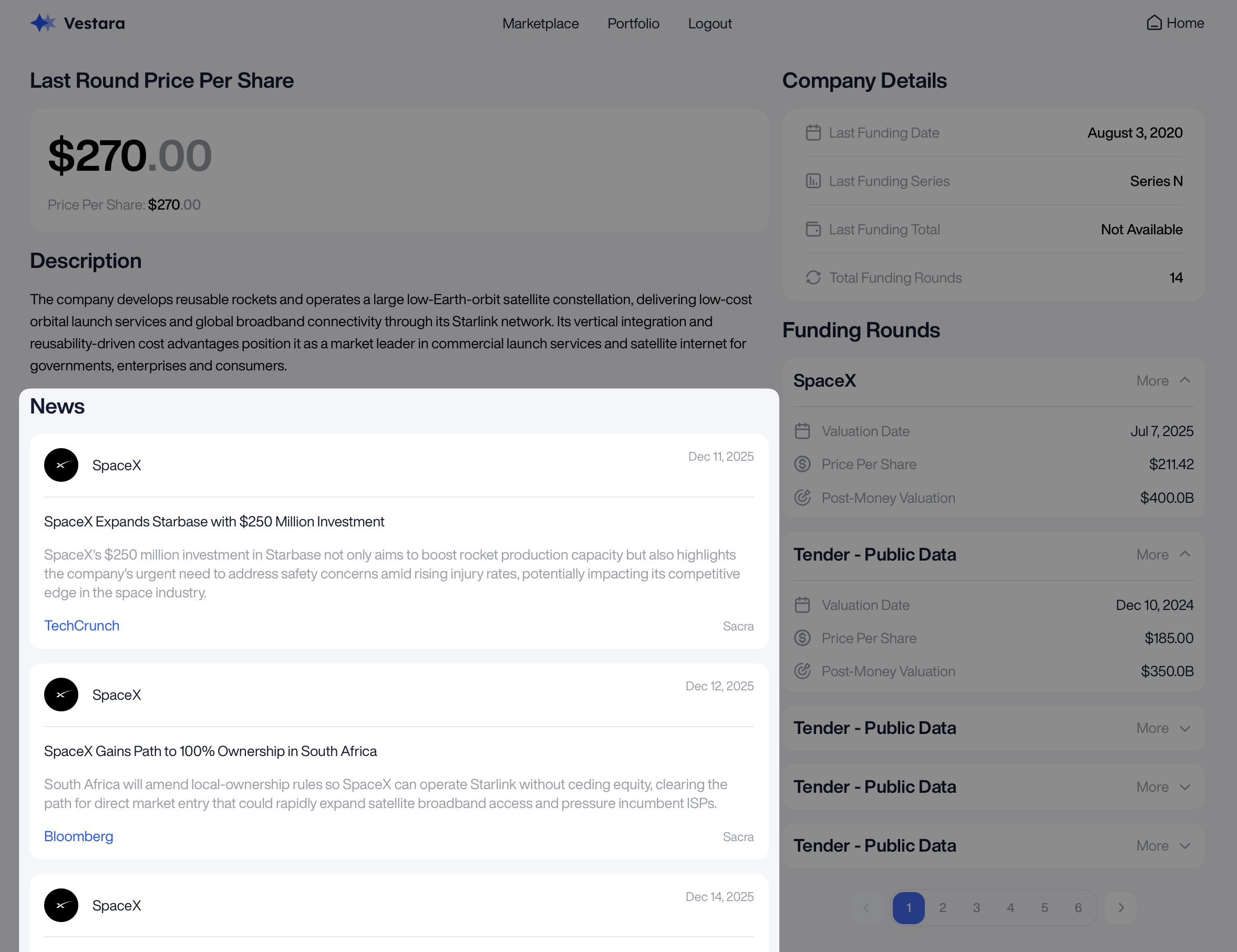 In order to provide users with sufficient information they need to get comfortable with an investment, your platform should include a “Company Page” that opens when a user clicks on a specific private company (not to be confused with an investment opportunity/SPV). The company page should also prominently display upcoming and currently available investment opportunities.