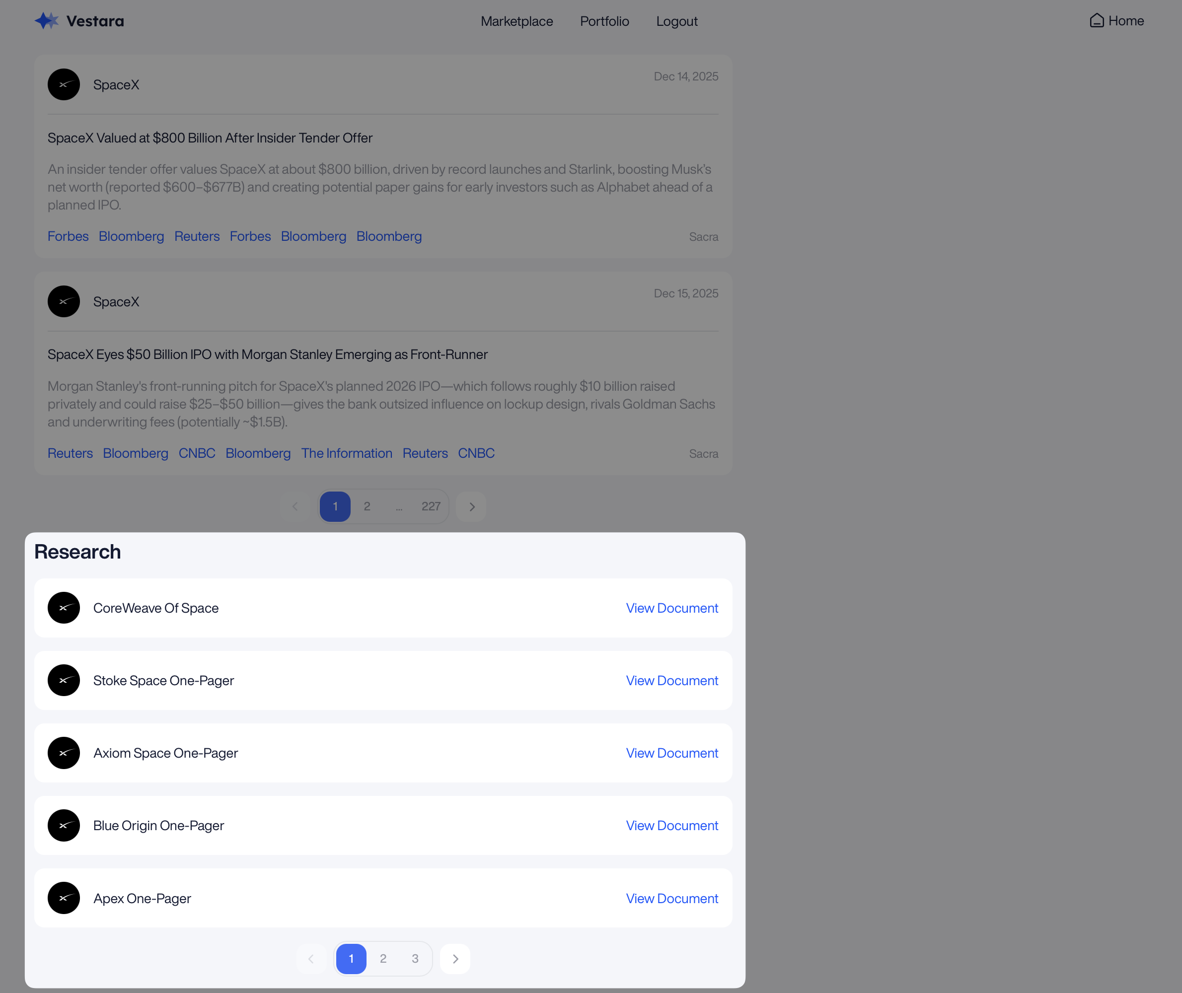 /primary/v1/pre-ipo-company-research/{id}Note regarding research: Make sure to filter by relation = SUBJECT and show the research documents in reverse chronological order for the best frontend experience.