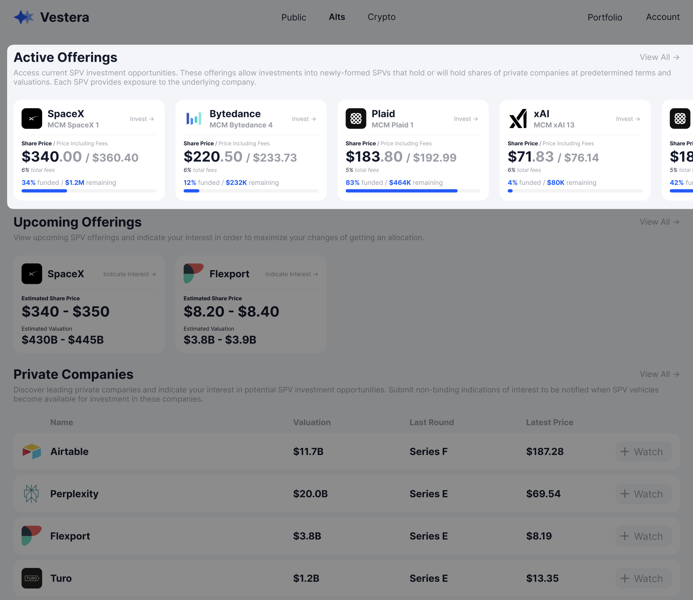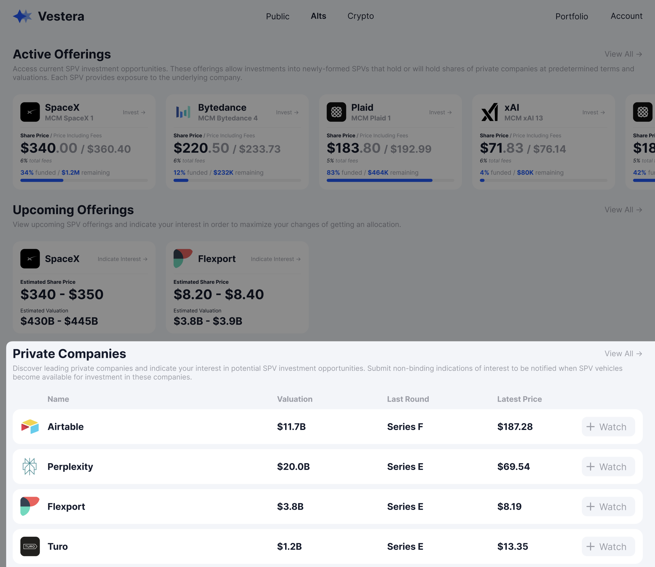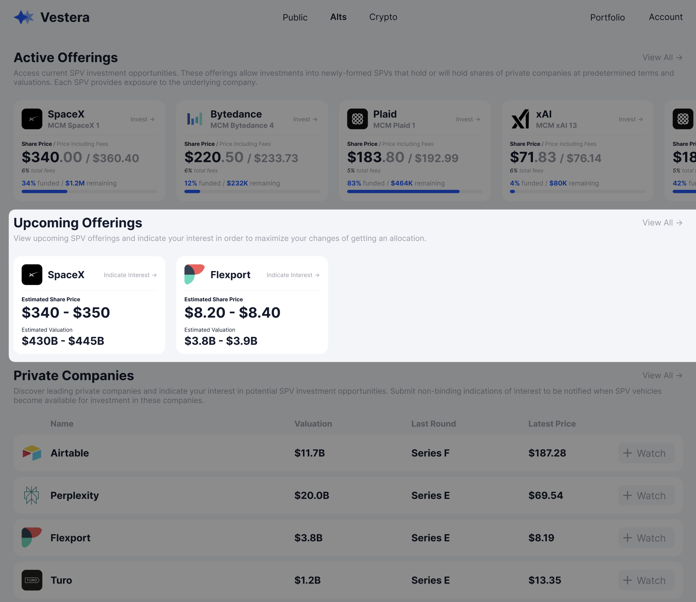 - Upcoming Offerings: Upcoming deals that users can submit Indications of Interest ("IOIs") against