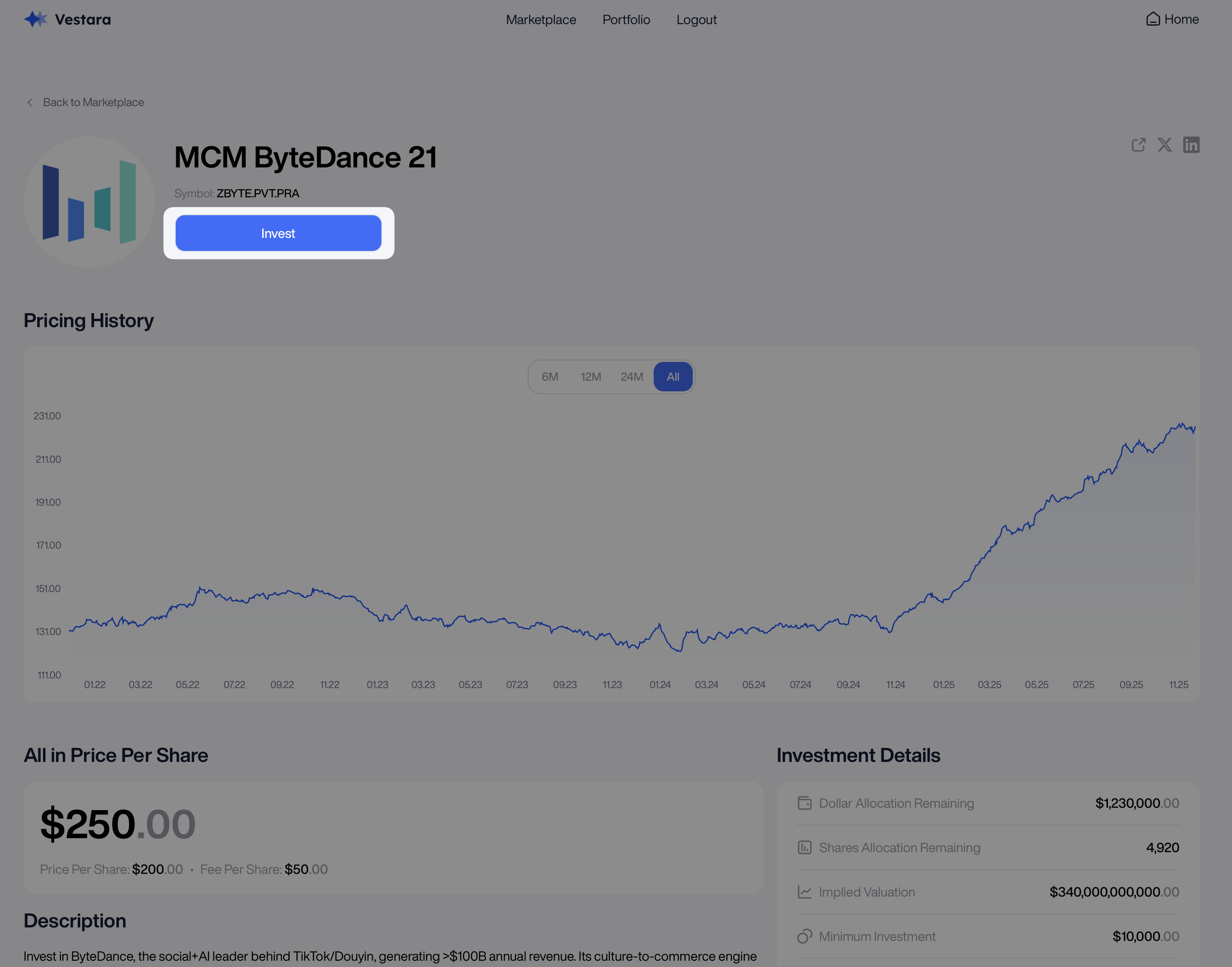Finally, each SPV page should prominently display a “Buy”, “Invest,” or other button that leads to the “Submit Investment (Transaction)” menu.